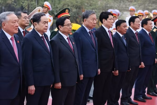 2026年1月19日上午,越共中央总书记苏林、党和国家领导人以及出席越南共产党第十四次全国代表大会的各位代表在入陵瞻仰胡志明主席遗容、在河内市北山路的英雄烈士纪念碑前敬献花圈后,前往河内国家会议中心出席大会预备会议。